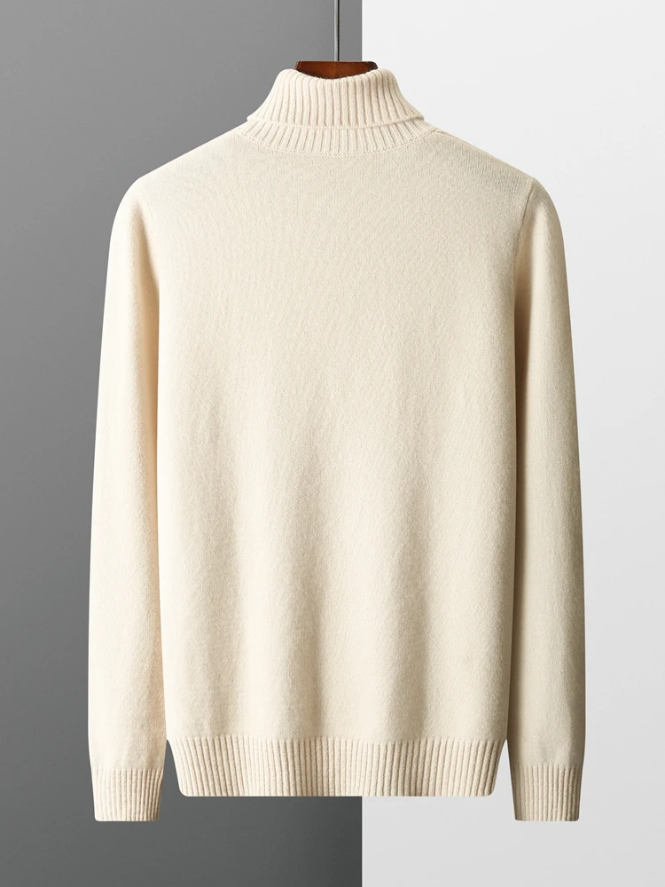 Meeste 100% meriinovillast topeltkõrge kaelusega mustriline kampsun S-XXL