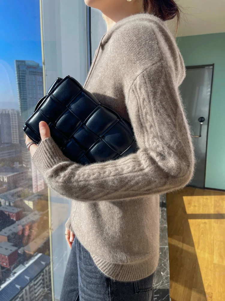 Sportlikuma stiiliga kuid elegantne kapuutsiga sviiter naistele 100% meriinovillast.