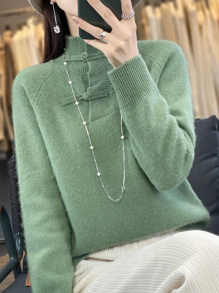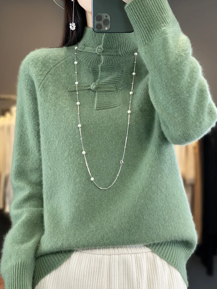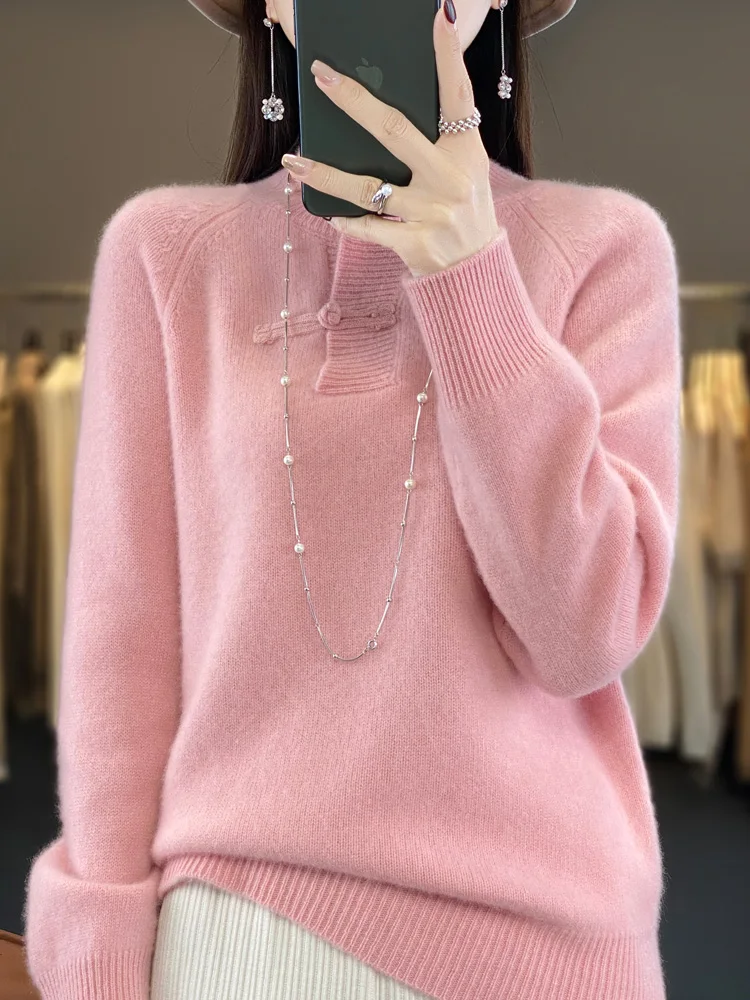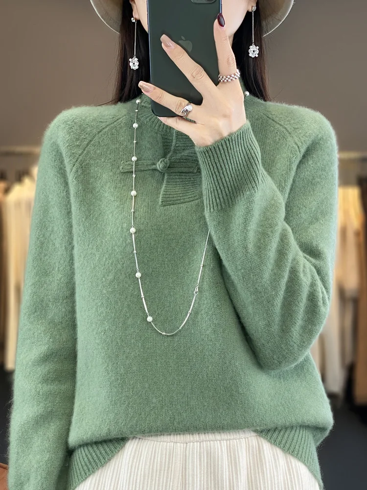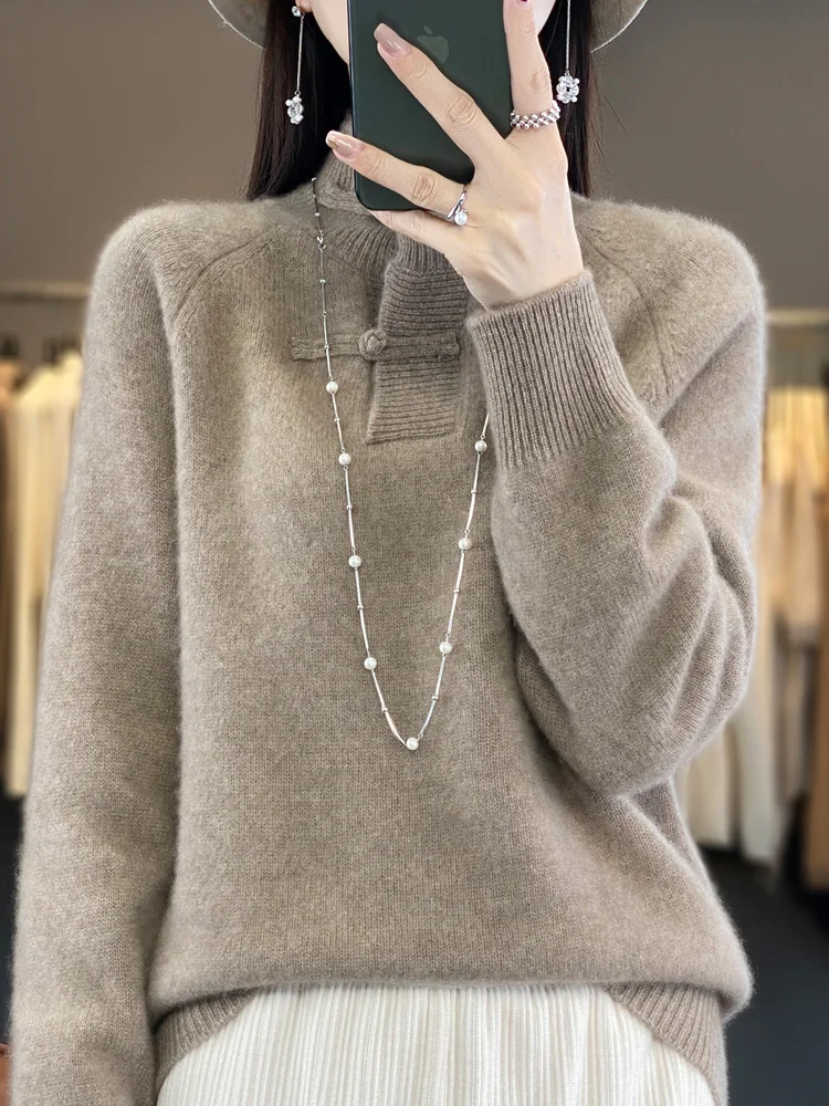 Naiste 100% meriinovillast madala kaeluse ja eesmise poolliistuga kampsun S-XXL